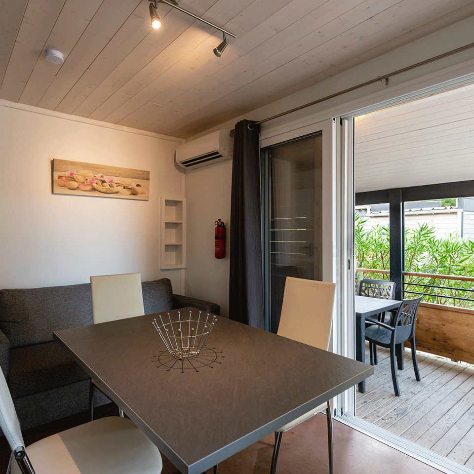 Onze Comfort chalets zijn oases van rust. Kom weer in contact met de natuur door te genieten van het alom aanwezige hout op het terras en geniet van maaltijden met familie of vrienden in de zeelucht.
