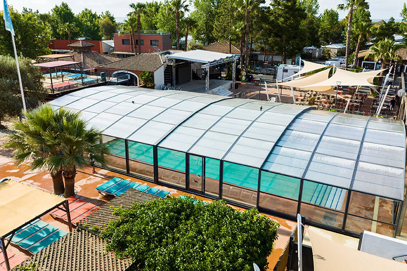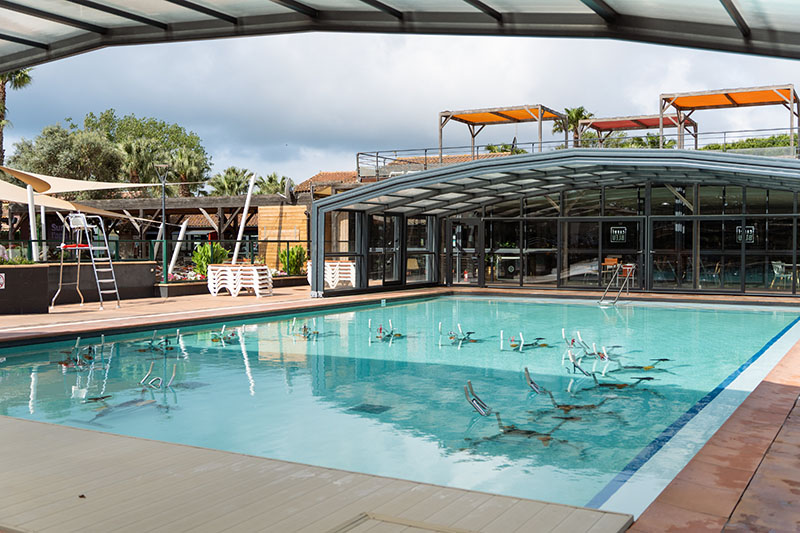 Cours d’aquagym le matin, temps couvert, mer froide, même les plus frileux trouveront de nombreuses excuses pour venir profiter de la piscine couverte. D’autant plus que selon l’ensoleillement cette piscine fermée pourrait bien se transformer en une piscine de camping semi-couverte. De quoi ravir tout le monde en offrant un espace à l’ombre et un espace au soleil.